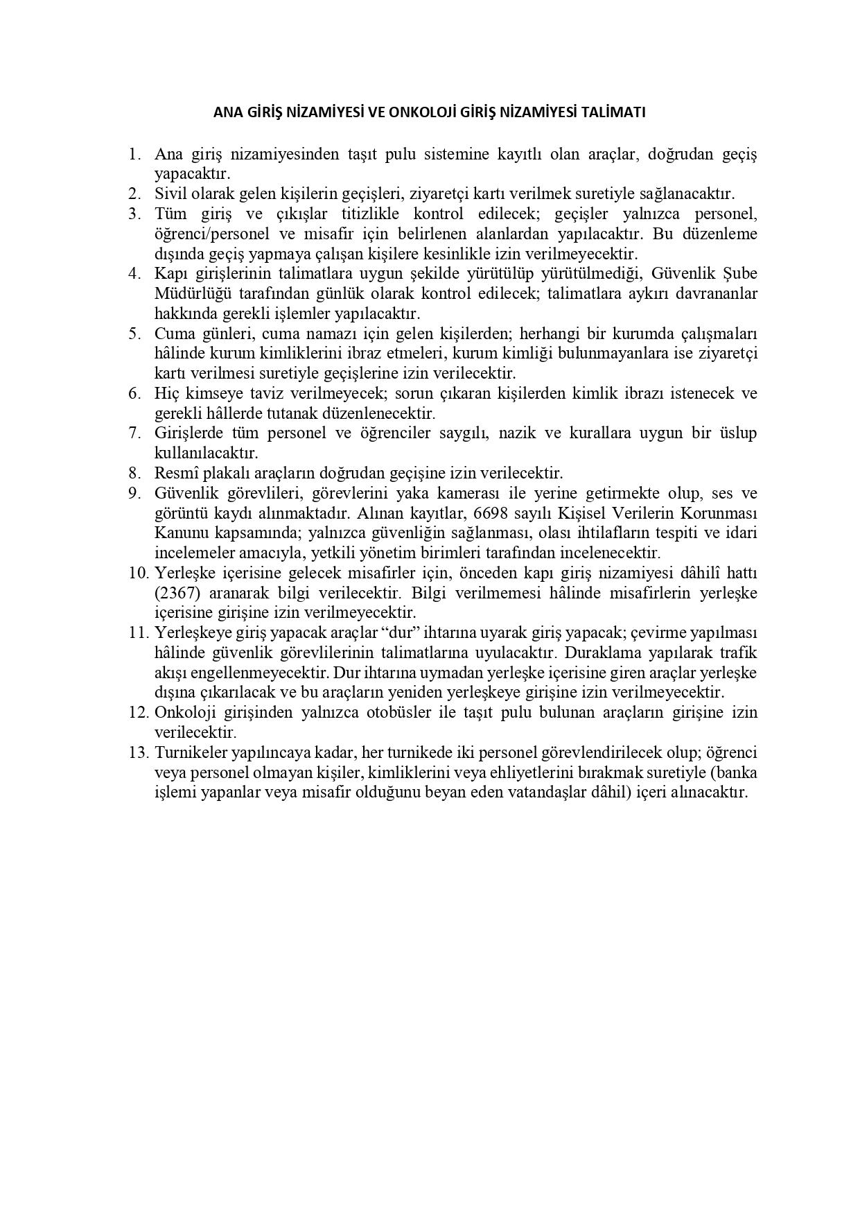 ÜNİVERSİTE NİZAMİYE GİRİŞ KAPILARININ TALİMATNAMESİ